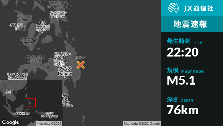 | 震源地 | フィリピンのBarcelonaから東北東13kmの地点 |