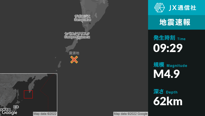 | 震源地 | ロシアのSevero-Kuril’skから南103kmの地点 |