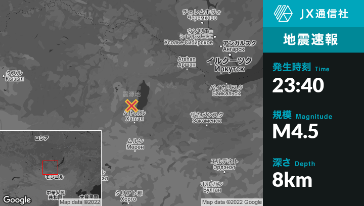 | 震源地 | モンゴルのTurtから南西72kmの地点 |