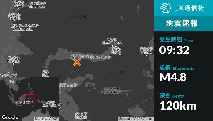 | 震源地 | インドネシアのGorontaloから西96kmの地点 |