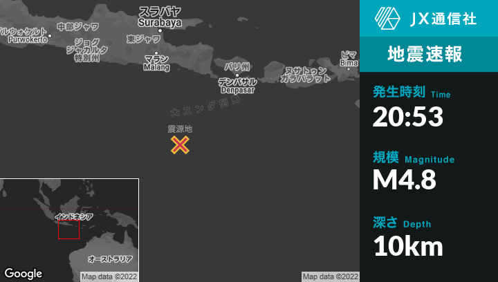 | 震源地 | インドネシアのKencongから南270kmの地点 |
