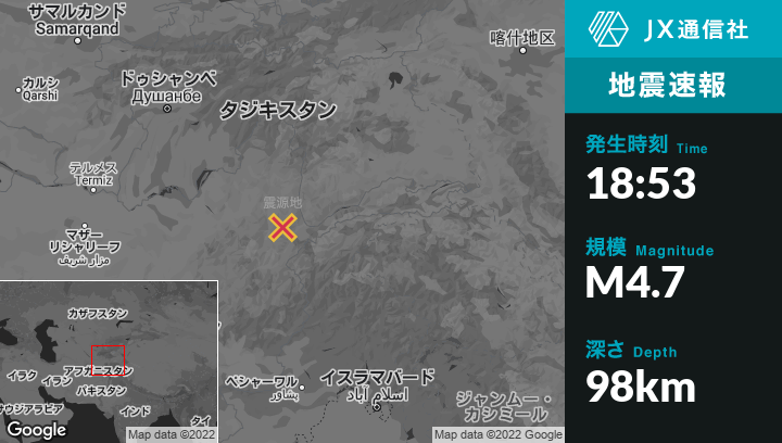 | 震源地 | アフガニスタンのJurmから東南東28kmの地点 |