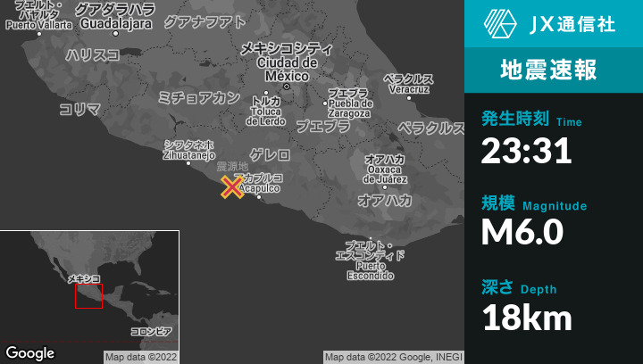 | 震源地 | メキシコのCorral Falsoから北西4kmの地点 |