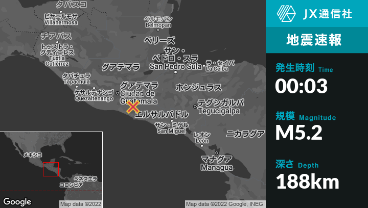 | 震源地 | グアテマラのEl Adelantoから西北西1kmの地点 |