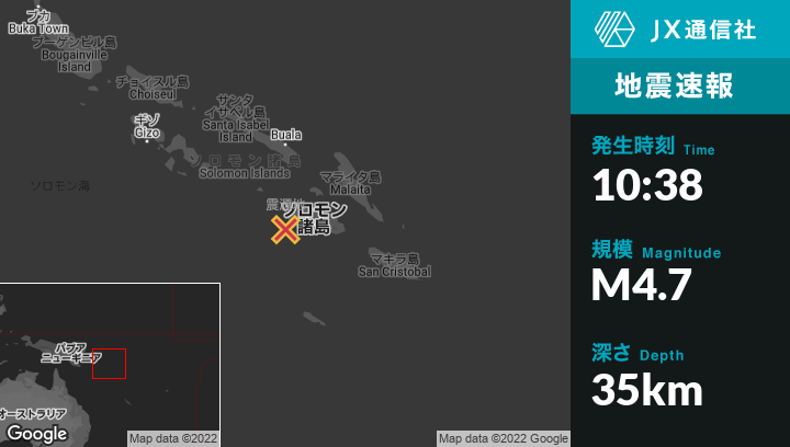 | 震源地 | ソロモン諸島のMalangoから西南西13kmの地点 |