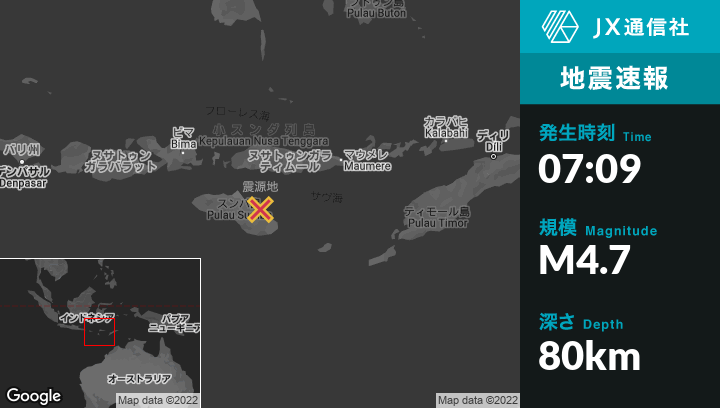 | 震源地 | インドネシアのWaingapuから東北東21kmの地点 |