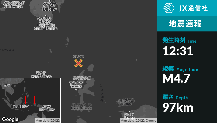 | 震源地 | インドネシアのTobeloから北北西127kmの地点 |
