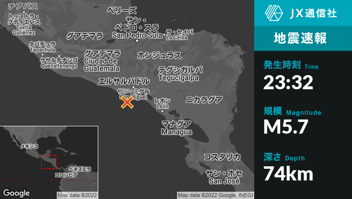 | 震源地 | エルサルバドルのPuerto El Triunfoから南南東39kmの地点 |