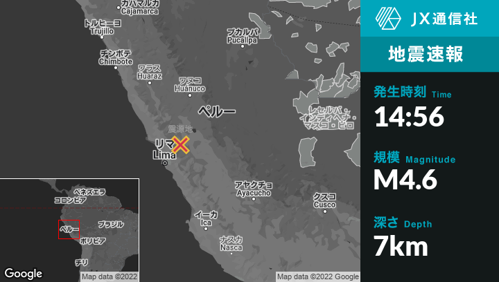 | 震源地 | ペルーのHuarosから北北東6kmの地点 |
