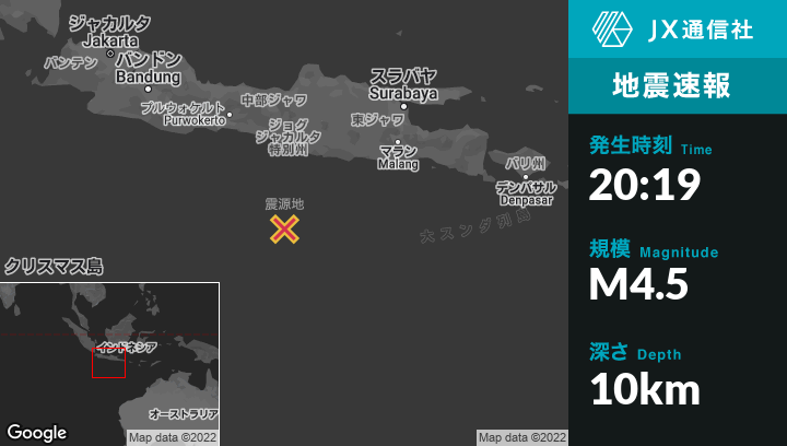 | 震源地 | インドネシアのPundongから南180kmの地点 |