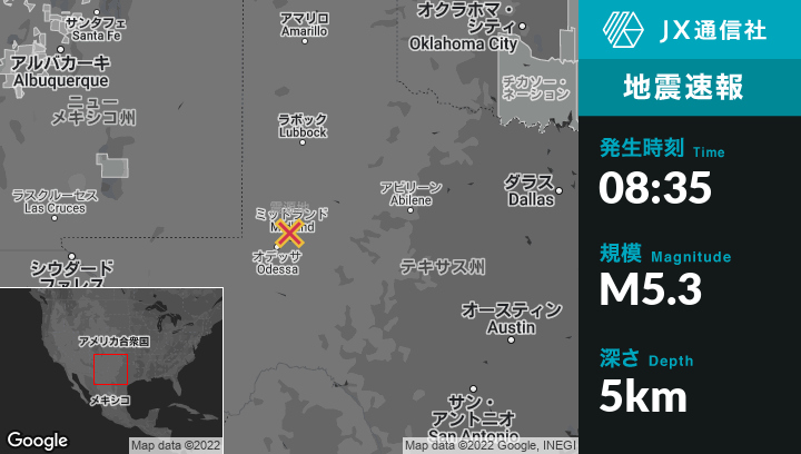 | 震源地 | テキサス州のMidlandから北北西20kmの地点 |