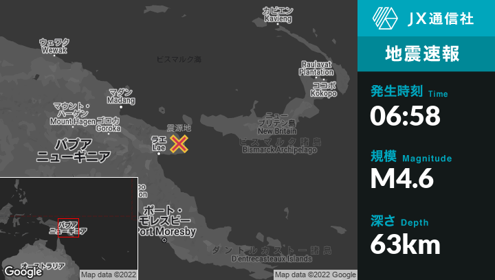 | 震源地 | パプアニューギニアのFinschhafenから北西39kmの地点 |