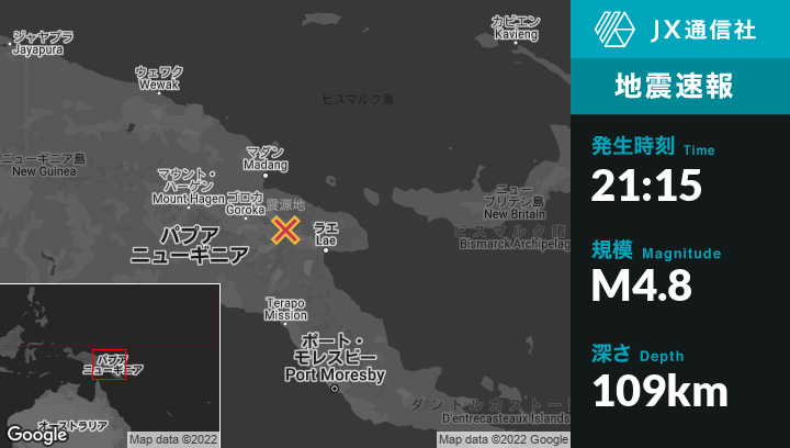 | 震源地 | パプアニューギニアのKainantuから東北東37kmの地点 |