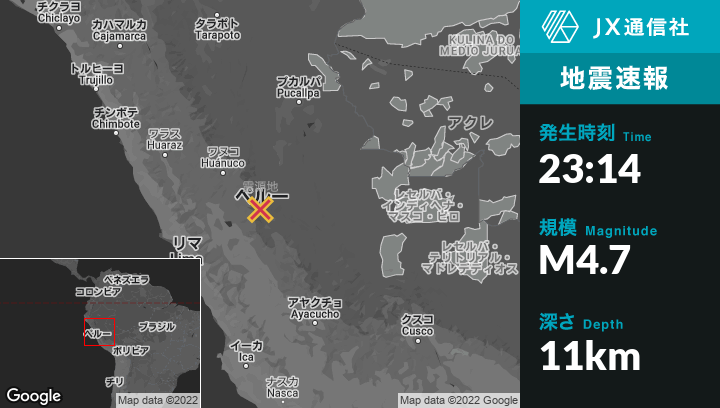 | 震源地 | ペルーのOxapampaから西南西3kmの地点 |