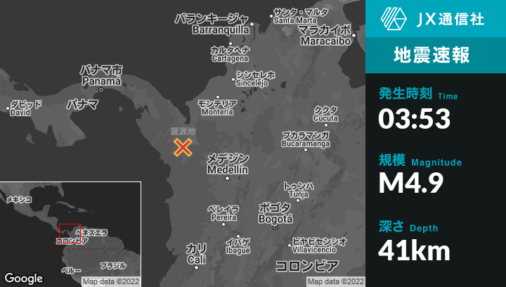 | 震源地 | コロンビアのRiosucioから南東22kmの地点 |