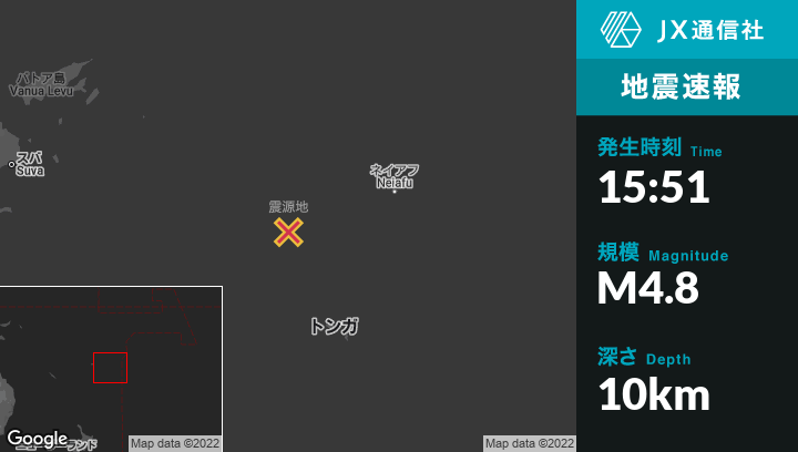 12月22日 15:51頃、トンガのPangaiから西北西191kmの地点でM4.8の地震がありました。