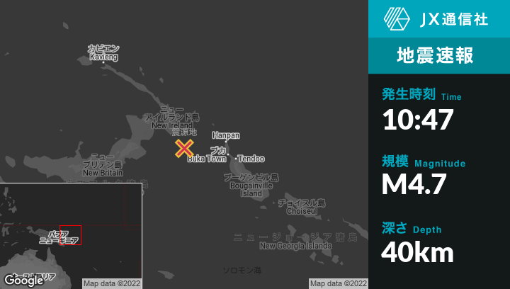 | 震源地 | パプアニューギニアのKokopoから南東143kmの地点 |