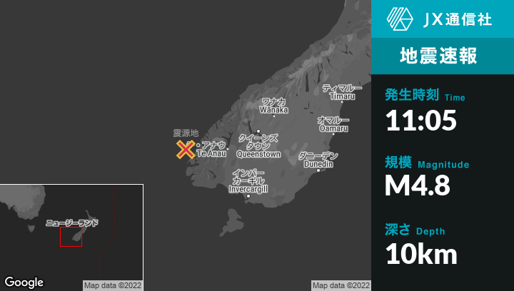 | 震源地 | ニュージーランドのTe Anauから西102kmの地点 |