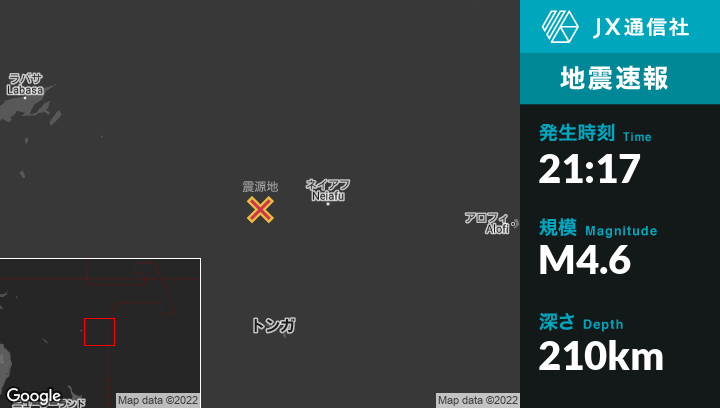 | 震源地 | トンガのNeiafuから西157kmの地点 |