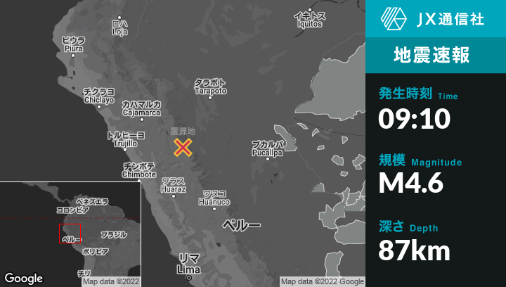 | 震源地 | ペルーのParcoyから東北東30kmの地点 |
