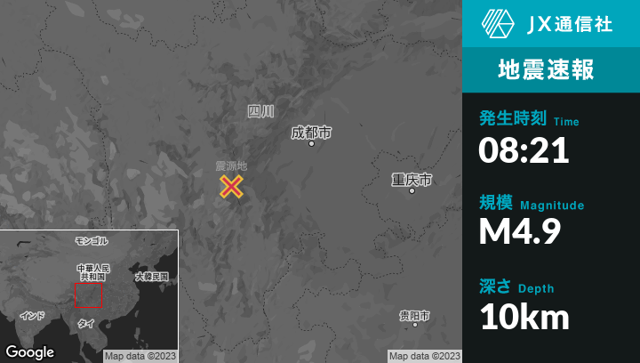 1月26日 08:21頃、中国のKangdingから南南東29kmの地点でM4.9の地震がありました。