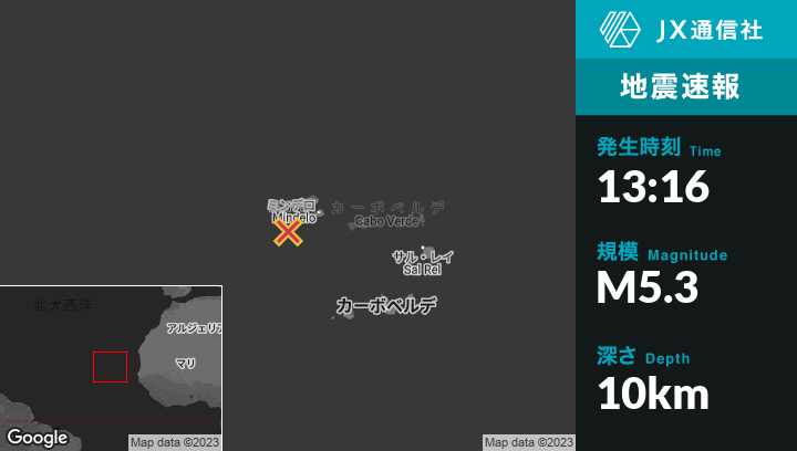 | 震源地 | カーボベルデのPorto Novoから南西73kmの地点 |