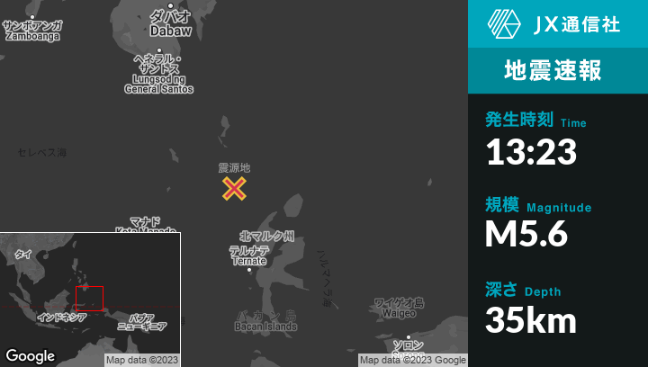 | 震源地 | インドネシアのTobeloから北西169kmの地点 |