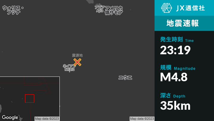 1月26日 23:19頃、トンガのNeiafuから北東107kmの地点でM4.8の地震がありました。
