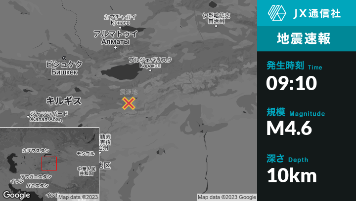 | 震源地 | キルギスタンのKadzhi-Sayから南南東77kmの地点 |