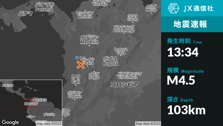| 震源地 | コロンビアのSan José del Palmarから北北東14kmの地点 |