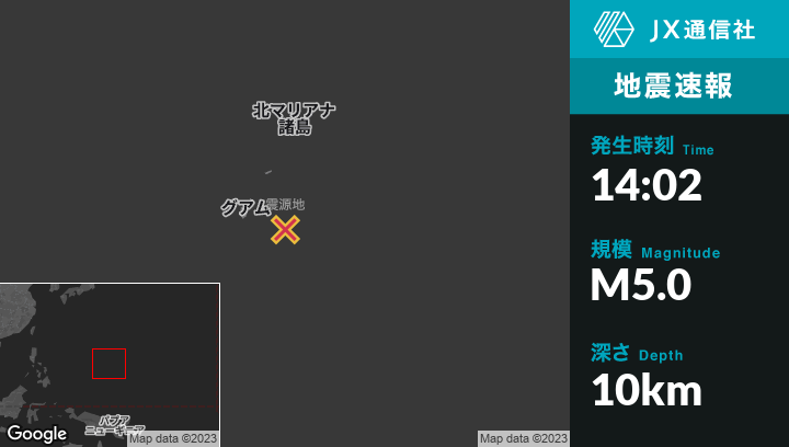 1月28日 14:02頃、グアムのYigo Villageから東南東82kmの地点でM5.0の地震がありました。