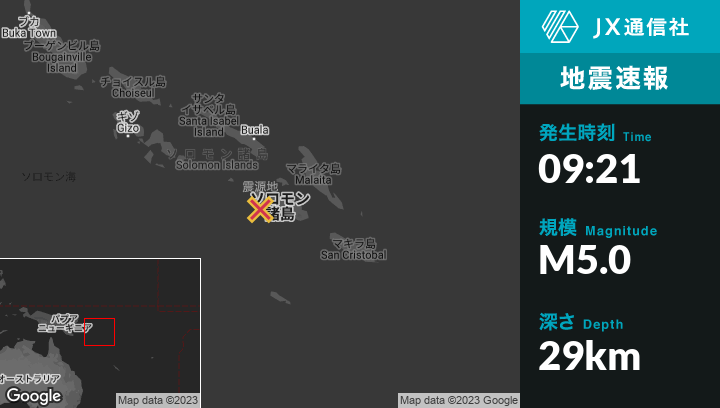 | 震源地 | ソロモン諸島のMalangoから北12kmの地点 |