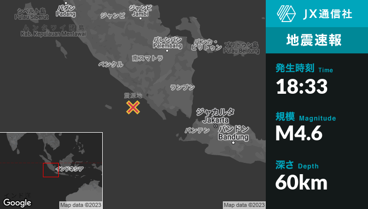 | 震源地 | インドネシアのPagar Alamから南139kmの地点 |