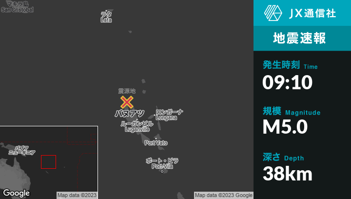 | 震源地 | バヌアツのPort-Olryから北西58kmの地点 |