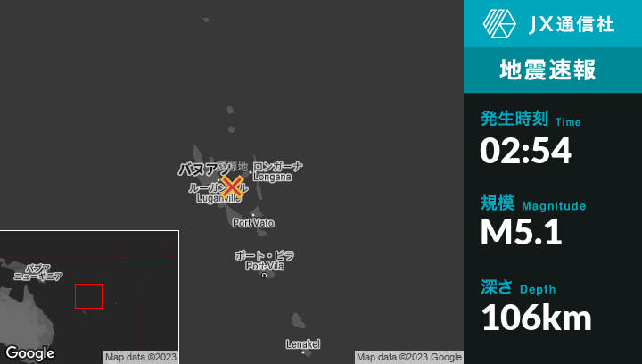 | 震源地 | バヌアツのLuganvilleから東38kmの地点 |