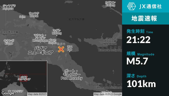 | 震源地 | パプアニューギニアのKainantuから東南東37kmの地点 |