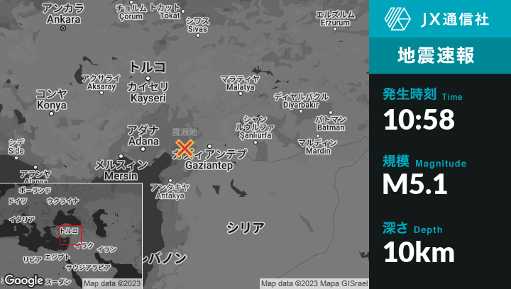 | 震源地 | トルコのHasanbeyliから東南東6kmの地点 |