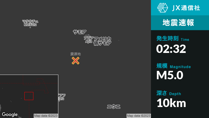 2月07日 02:32頃、トンガのHihifoから東北東117kmの地点でM5.0の地震がありました。