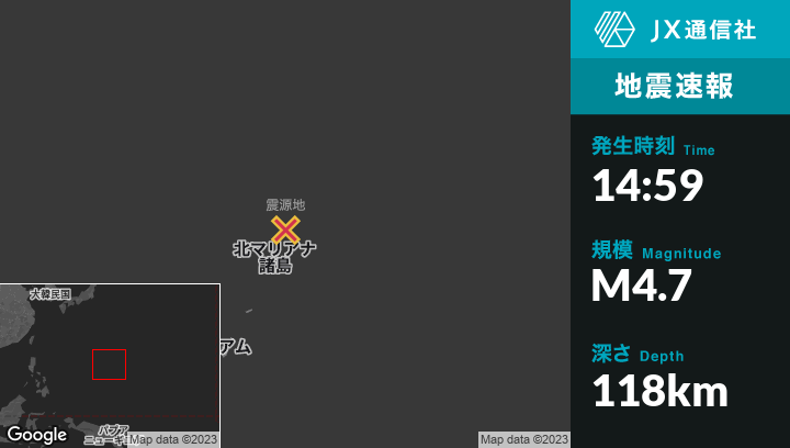 | 震源地 | 北マリアナ諸島のSaipanから北北東71kmの地点 |