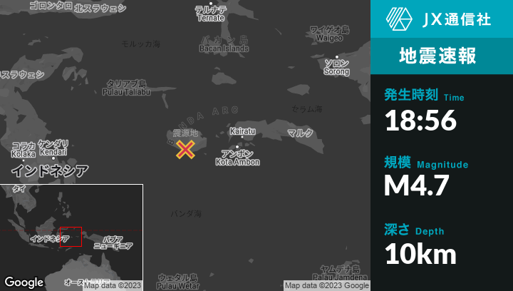 | 震源地 | インドネシアのAmbonから西176kmの地点 |