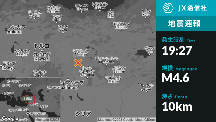 | 震源地 | トルコのÇelikhanから北西15kmの地点 |
