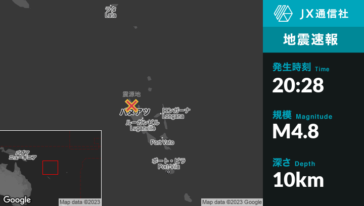 | 震源地 | バヌアツのPort-Olryから西北西44kmの地点 |