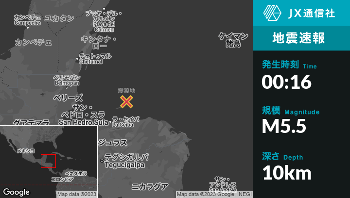 | 震源地 | ホンジュラスのGuanajaから北北西38kmの地点 |