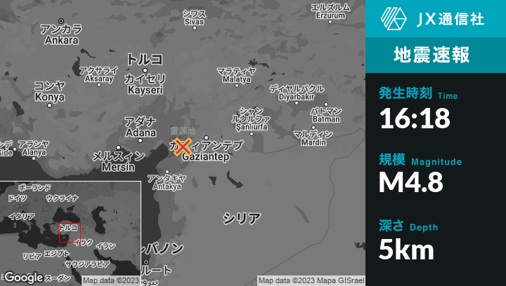 2月09日 16:18頃、トルコのAşağı Karafakılıから北北東18kmの地点でM4.8の地震がありました。