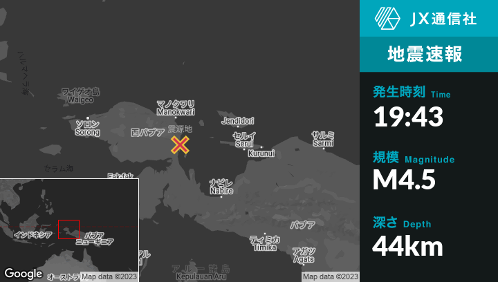 | 震源地 | インドネシアのManokwariから南82kmの地点 |