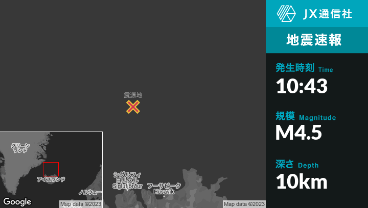 | 震源地 | アイスランドのSiglufjörðurから北163kmの地点 |