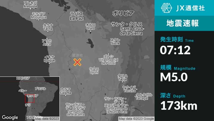 | 震源地 | ボリビアのColchaniから西北西122kmの地点 |