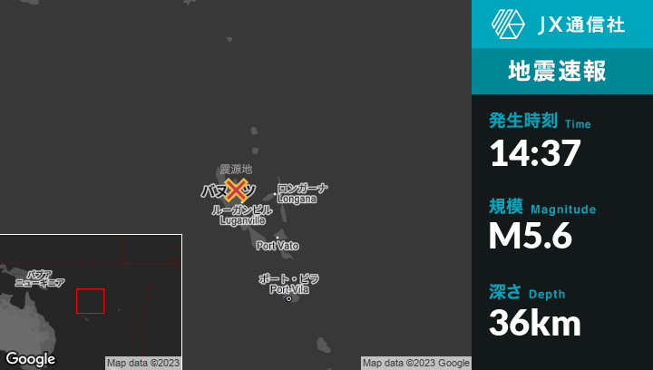 | 震源地 | バヌアツのPort-Olryから南西7kmの地点 |