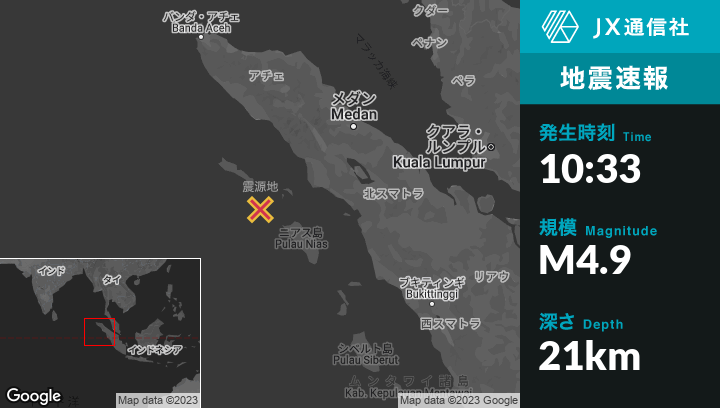 | 震源地 | インドネシアのSinabangから南南東69kmの地点 |