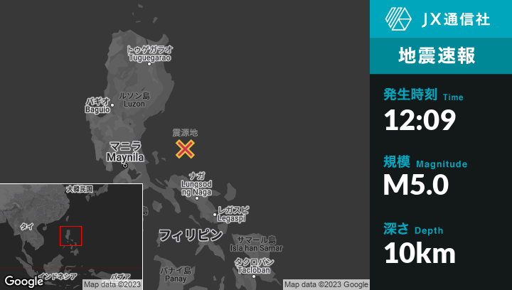 2月20日 12:09頃、フィリピンのCasuguranから北東73kmの地点でM5.0の地震がありました。